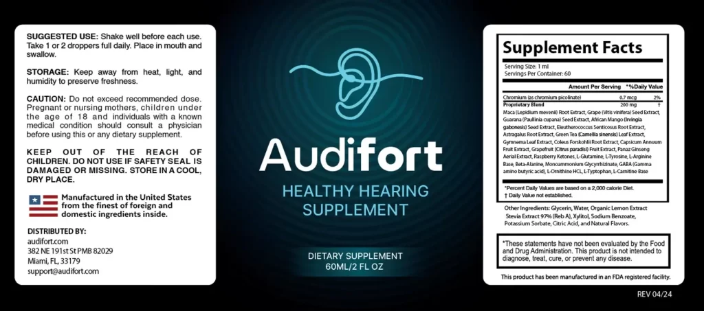 Audifort is a health and wellness brand specializing in scientifically formulated natural supplements aimed at supporting hearing health. Their flagship product, Audifort Drops, is a liquid supplement crafted from a blend of potent vitamins, minerals, and herbal extracts specifically selected to promote better hearing, reduce age-related hearing risks, and improve auditory clarity.